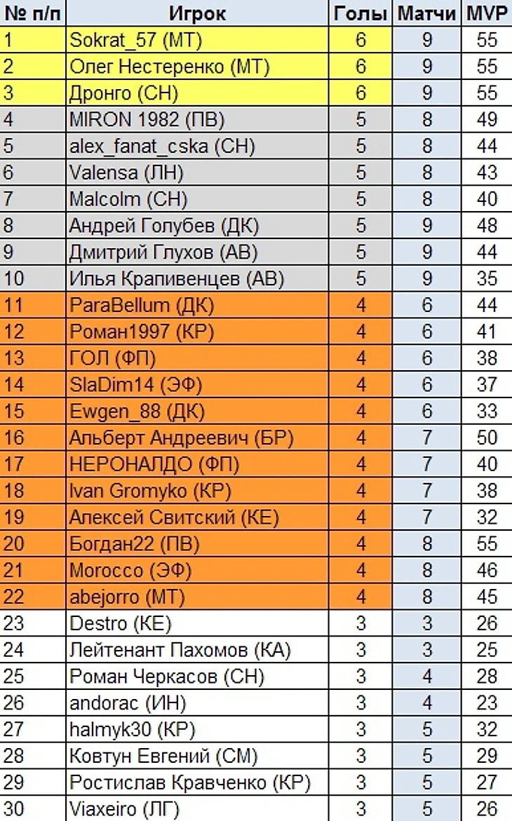 Нападающие: Роман1997, Ivan Gromyko (оба – Киевская Русь), BooTs (Лион) Тут всё просто, вижу троих лучших по УВ – вот и готова тройка нападения ;)