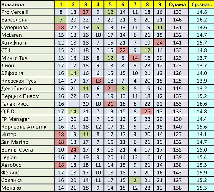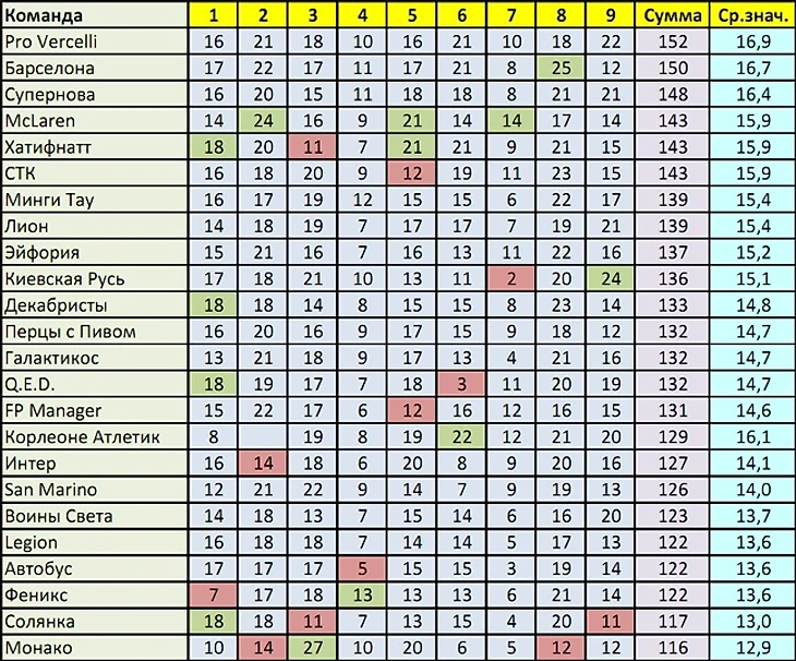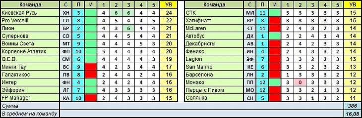 Тренер: SviSviLevenko (Киевская Русь), отличился невероятной прозорливостью, отказавшись от сомнительных вариантов и правильно определив исход МДП. Как следствие, была побеждена одна из сильнейших команд Лиги – “Хатифнатт”.