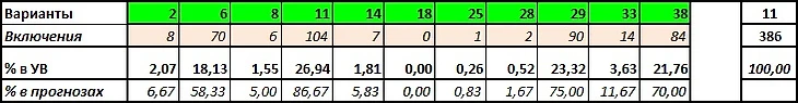 Сыграно вариантов: 11 (2-6-8-11-14-18-25-28-29-33-38)