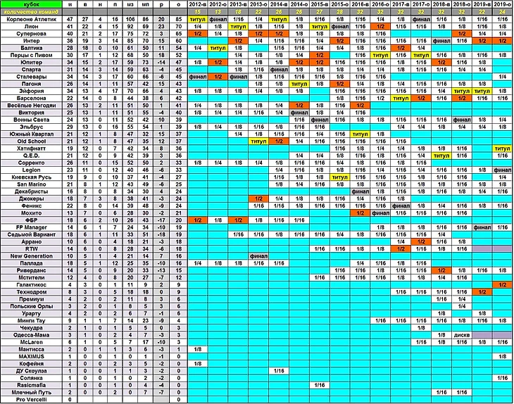 Вкратце напомним вам статистические показатели участников КЯ за все сезоны.
