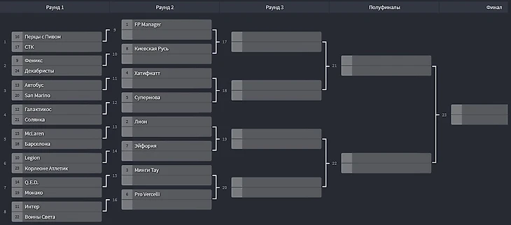 Участники 1/16 финала могут начинать готовиться, изучать МДП и своих соперников и не забывать, что в случае успеха следующий матч будет уже через день. И так далее, согласно расписанию.