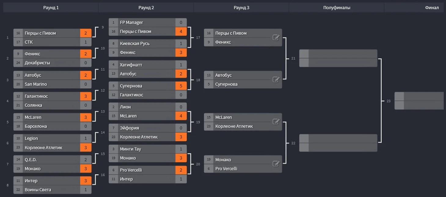 3. Эндрю Томпсон (1-6-7-14-17-29-34) - Роман Федоринин (1-6-7-11-14-17-39) 1:1 (2)