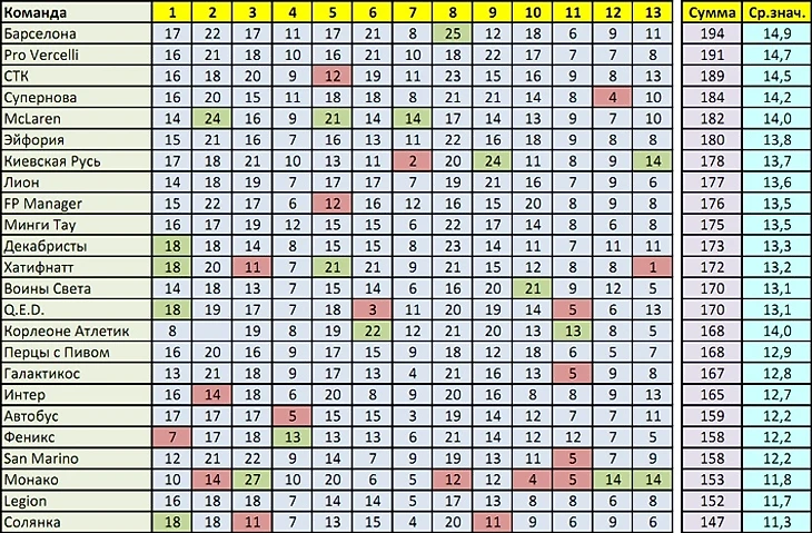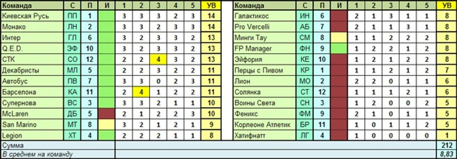 Лучшая команда тура по сумме УВ в целом: Киевская Русь, Монако – 14 вариантов