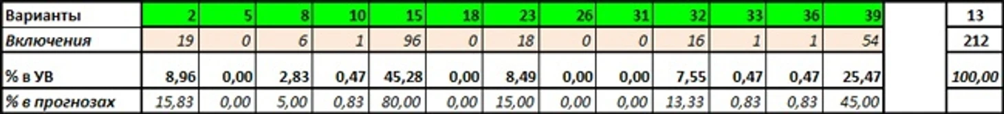 Сумма угаданных вариантов: 212 из 840 (25,24%)