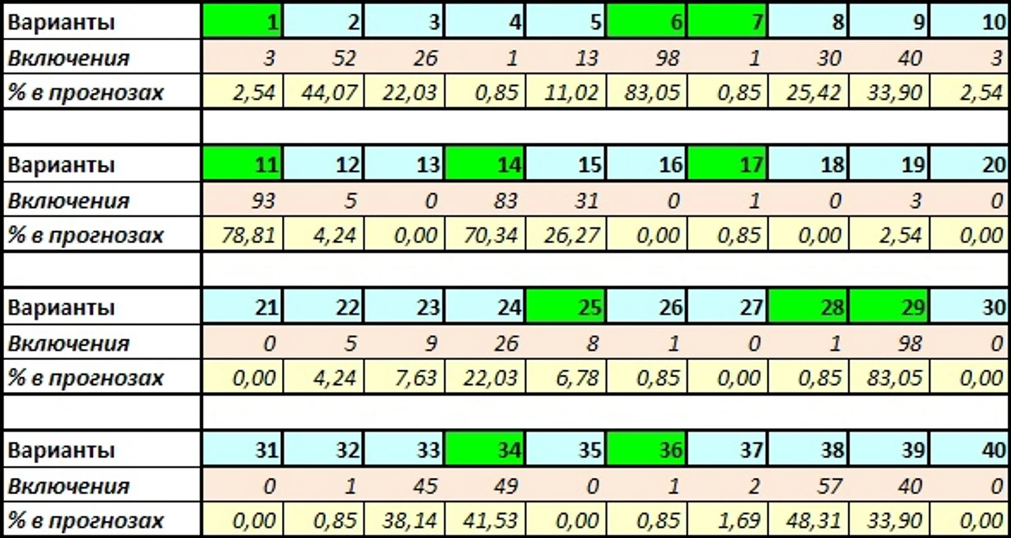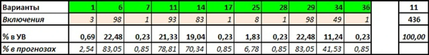 Сыграно вариантов: 11 (1-6-7-11-14-17-25-28-29-34-36)