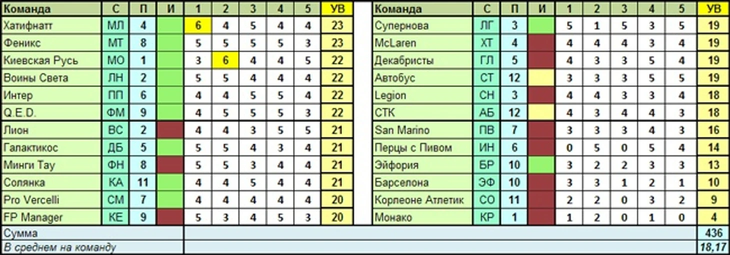 Лучшая команда тура по сумме УВ в целом: Феникс, Хатифнатт – 23 варианта