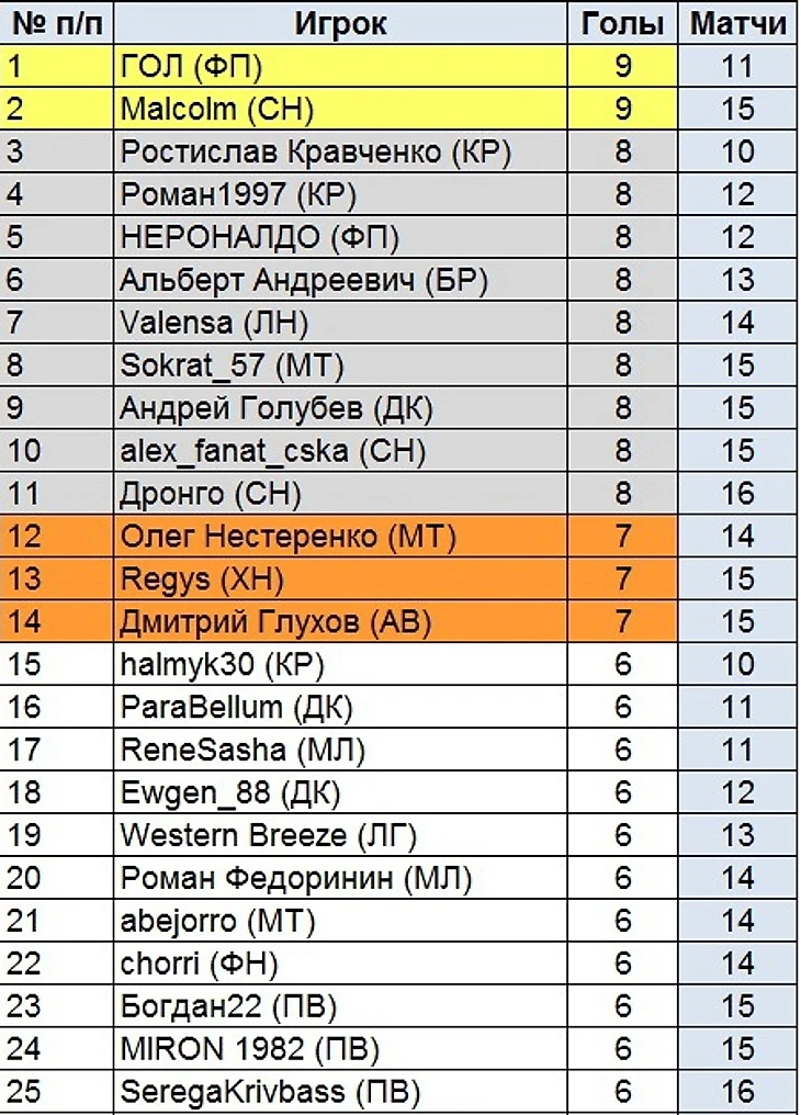 В списке бомбардиров толкучка уменьшилась, образовался дуэт лидеров.