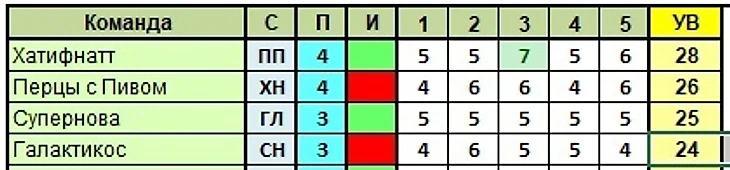 Лучшая команда тура по сумме УВ в целом: Хатифнатт – 28 вариантов