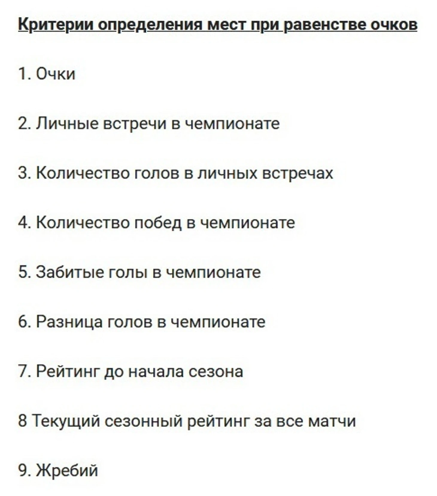 В случае равенства очков у четырёх команд: Интера, Декабристов, Хатифнатта и Суперновы – лишним оказывается Интер.