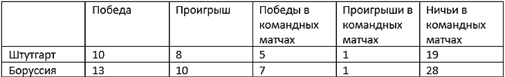 Гости на данный момент находятся на 5-м месте с 43 очками, после 13V - 4D - 10L. В последних 10 выездных матчах чемпионата Боруссия Дортмунд зафиксировала 3V - 2D - 5L, набрав 11 очков из 30 возможных. В 27 матчах этого соревнования, Боруссия, 12 раз забила первый гол и успела забить только 2 хода на табло. Давайте подробнее рассмотрим всю информацию: