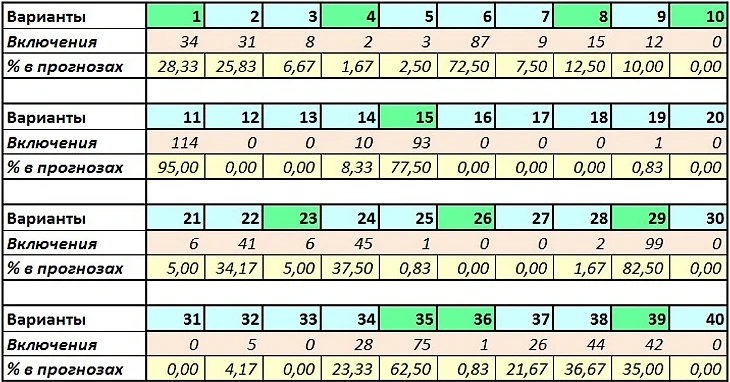 Сумма угаданных вариантов: 367 из 840  (43,7%)