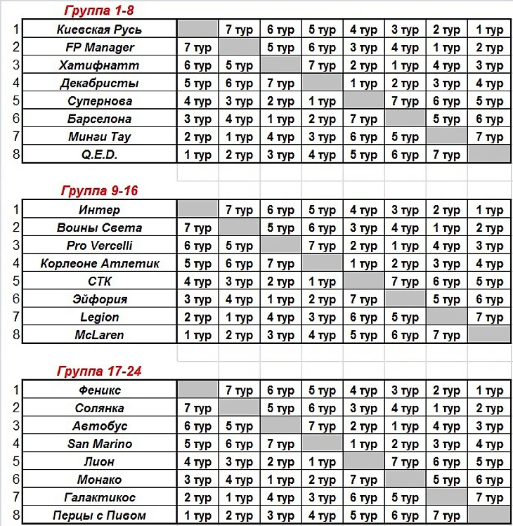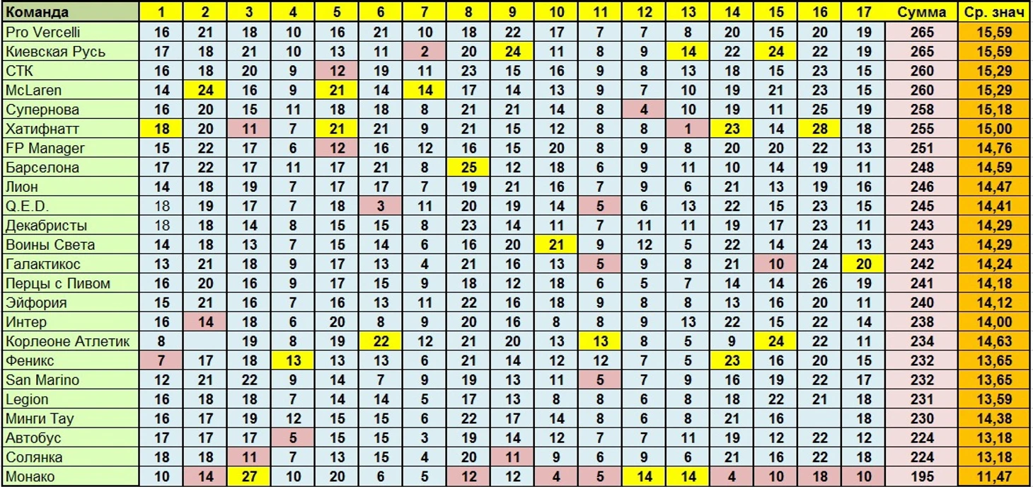 (если вы увидели, что при равенстве очков ваше место должно быть выше соперника, не обращайте пока внимания. Это технический момент, связанный с обсчётом таблиц. На старте он пока не имеет значения. Зато на финише мы всё расположим в верном порядке:))