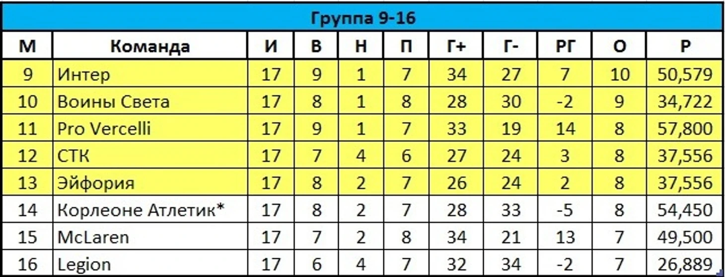 Так что, даже если вам кажется, что бороться уже не за что, не забудьте про сезонный рейтинг. Каждой команде нужны будут очки, чтобы не оказаться в тройке худших по итогам сезона. Кстати, команды из группы 9-16 вряд ли могут спать спокойно, ведь у некоторых рейтинг невысок и, проиграв большинство матчей, они опустятся на самое дно по этому показателю и в следующем сезоне возможно распрощаются с Лигой спортса.