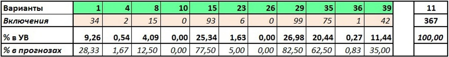 Сыграно вариантов: 11 (1-4-8-10-15-23-26-29-35-36-39)
