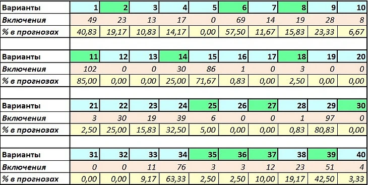 Сумма угаданных вариантов: 321 из 840 (38,2%)