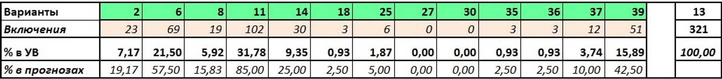 Сыграно вариантов: 13 (2-6-8-11-14-18-25-27-30-35-36-37-39)