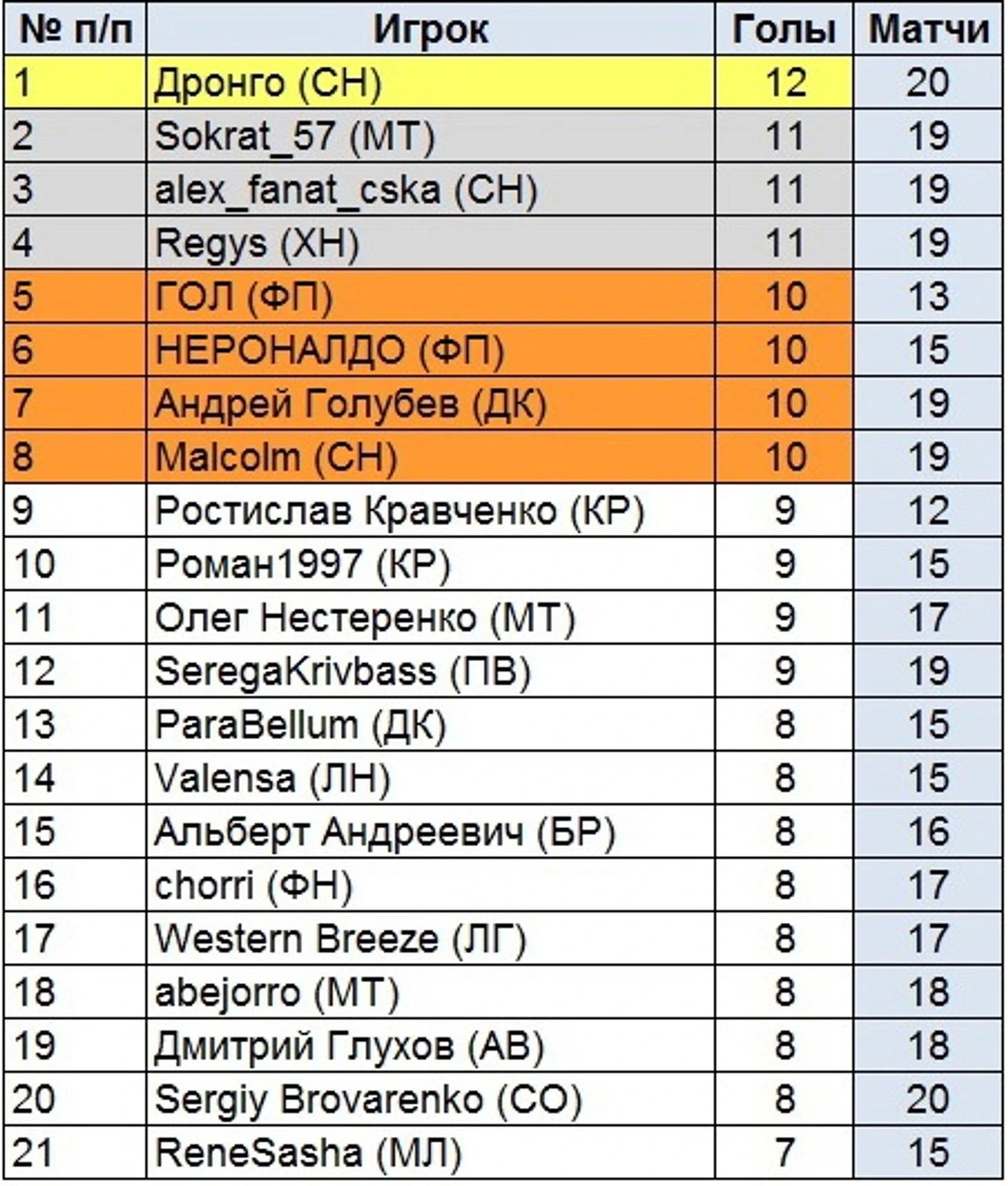 Форварды: Dante Des, Centurion18 (оба – Корлеоне Атлетик), Fabio (Интер). Первый попал во все поставленные варианты, редкий случай. Двое других чуть отстали от победителя, но опередили всех остальных.