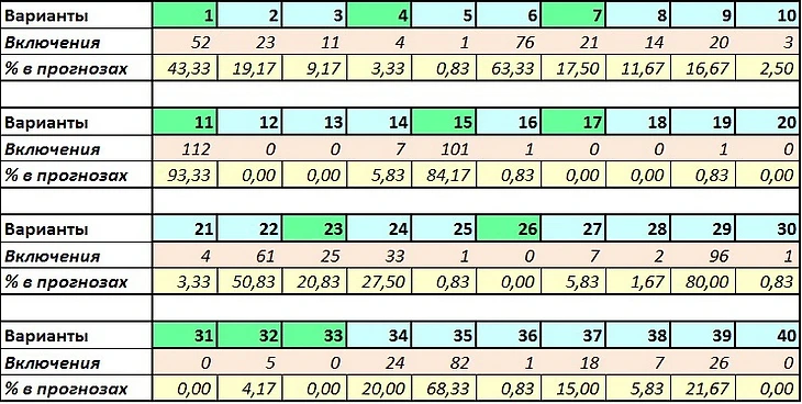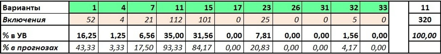 Сумма угаданных вариантов: 320 из 840 (38,1%)