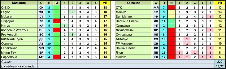 Лучший игрок тура по сумме УВ: Kvadrat16 (Интер), dnipro83 (Pro Vercelli), Артём Лозовой (Legion) – по 5 вариантов