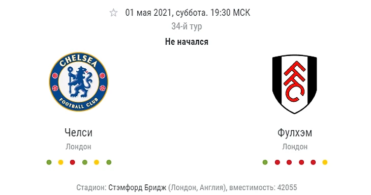 Челси продолжает борьбу за топ - 4 и победа в домашнем матче против Фулхэма крайне важна, ведь дальше сложный календарь и матчи против прямых конкурентов, не стоит забывать и про предстоящие кубковые встречи. Фулхэм почти вылетел и глубины скамейки Челси должно хватить, чтобы разобраться с аутсайдером на своем поле. В последних 5 очных матчах Челси одержал победу.