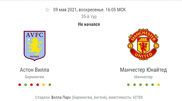 2. Астон Вилла - Манчестер Юнайтед