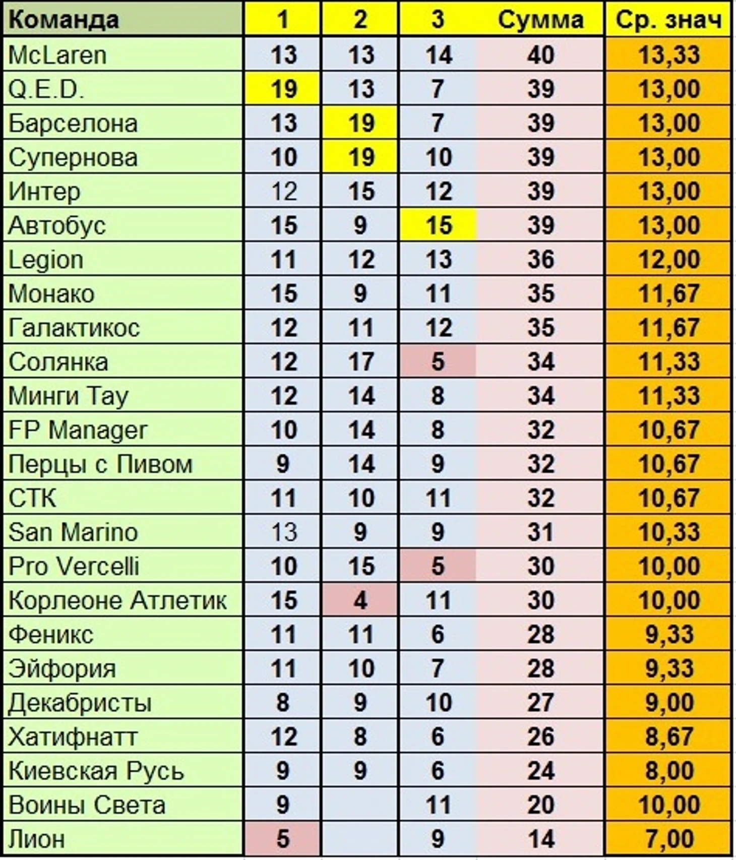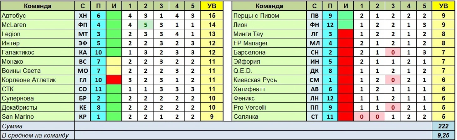 Лучшая команда тура по сумме УВ в целом: Автобус– 15 вариантов