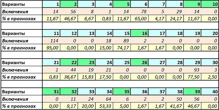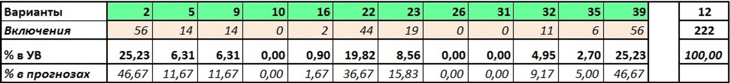 Сумма угаданных вариантов: 222 из 840 (26,4%)