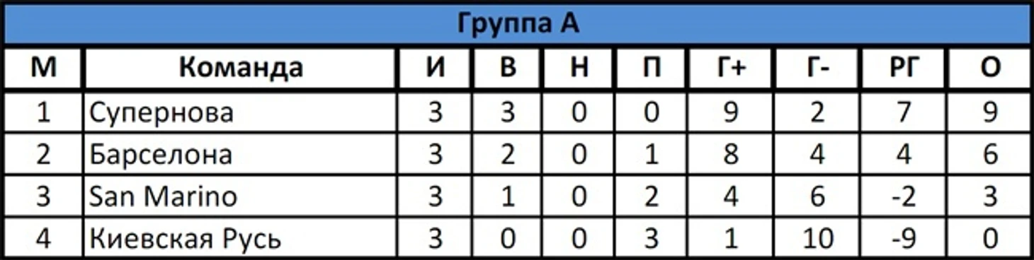 Супернова уверенно выиграла группу, набрав максимум очков и теперь набирается сил перед четвертьфиналом. Барса, проиграв, отправилась на ступень выше – в одну восьмую. Основная интрига заключалась в матче аутсайдеров. Русь снова осталась без победы, а потому теперь отправится покорять утешающий Кубок Копа де ла Луна. Сан-маринцы же продолжают борьбу за Копа дель Соль, вступая в неё уже завтра, на стадии 1/16 финала.