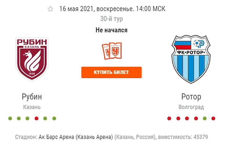 Рубин не попадет в Лигу чемпионов, но за Лигу Европы ожидается ожесточенная борьба. Соперник в последнем туре попался удобный, Ротор провалил чемпионат и в обороне регулярно ошибается. Не сможет помочь казанцам Хвича, но и без него атака Рубина должна справиться, в хорошей форме находится Деспот. Слуцкий должен настроить команду и уверенно победить аутсайдера, в случае осечки Локомотива возможно даже 3 место.