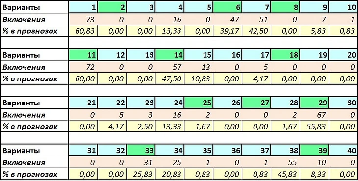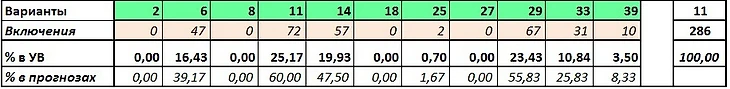Сыграно вариантов: 11 (2-6-8-11-14-18-25-27-29-33-39)