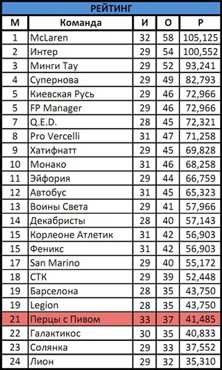 Немного жаль Корлеоне Атлетик. В течение сезона периодически этот коллектив жёг как никто, показывая в отдельных матчах нереально высокий результат. Но опять же, планку не удалось удержать надолго – мафиози также досрочно заканчивают сезон.