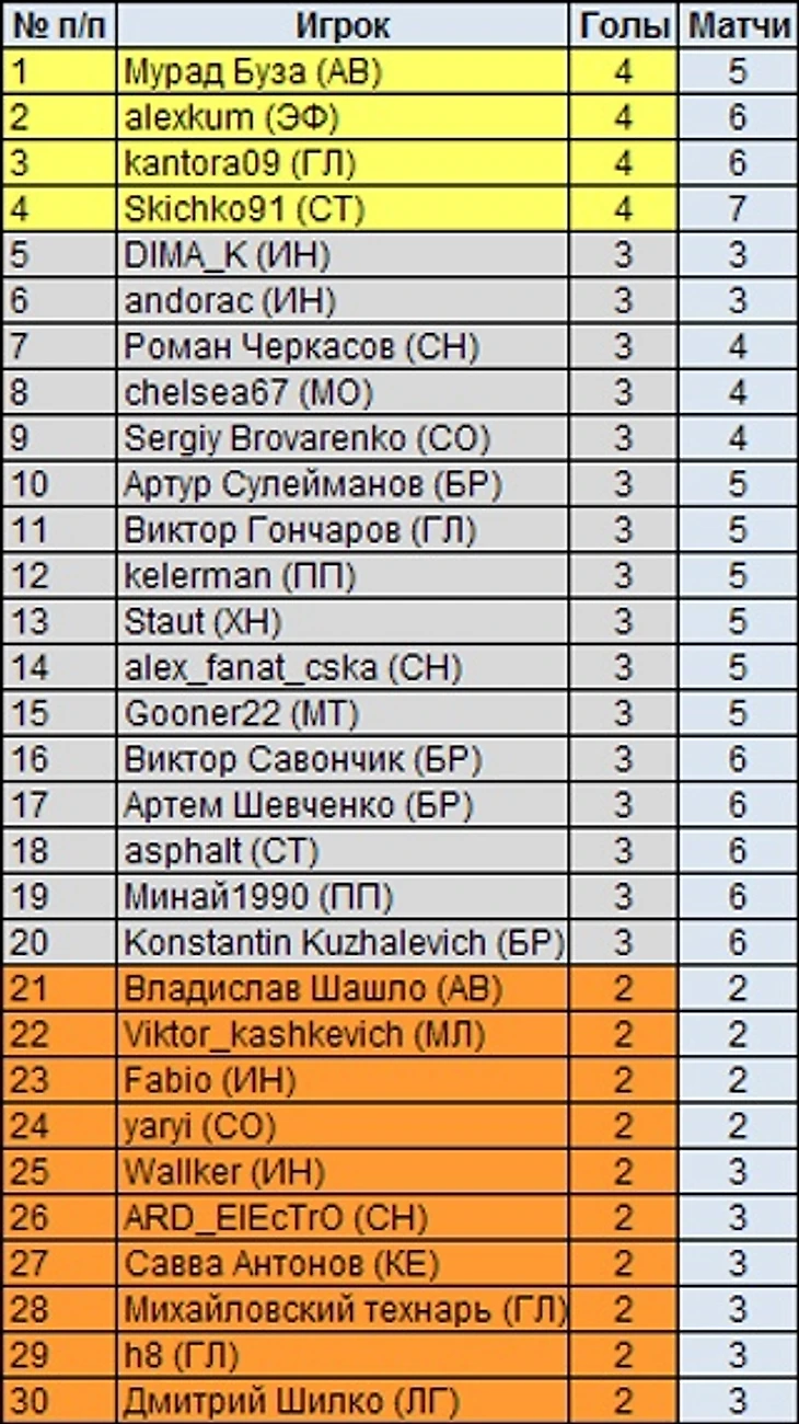 Лучшие игроки тура по сумме УВ: DIMA_K (Интер), asphalt (СТК) – 3 варианта