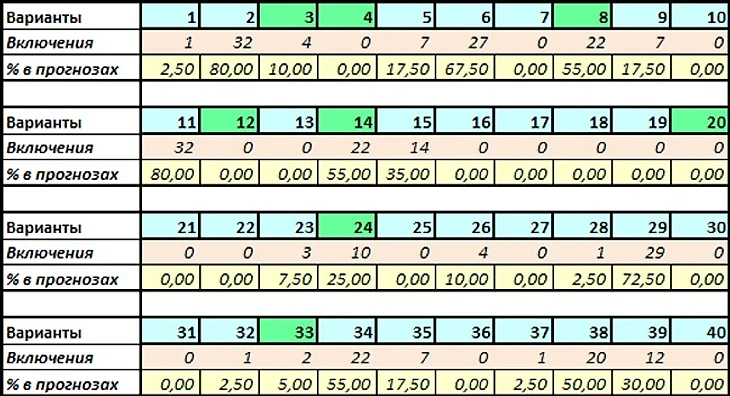 Сыграно вариантов: 8 (3-4-8-12-14-20-24-33)