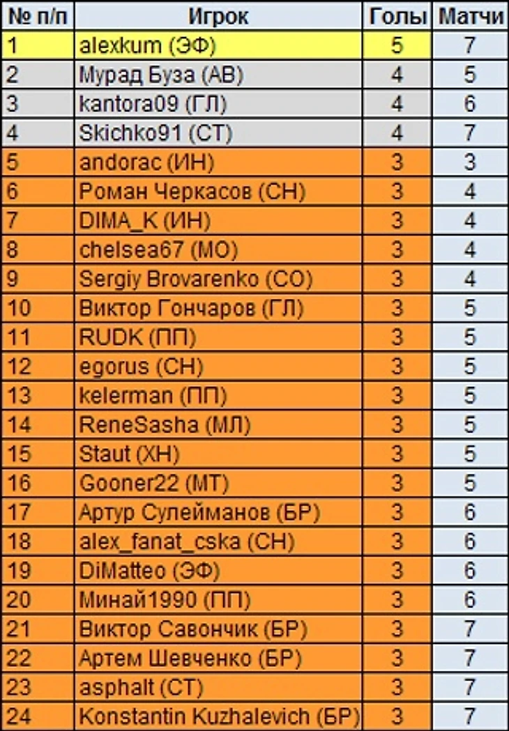 1. Ігор Піскун (1-4-7-11-15-34-38) - romansky (6-11-14-25-29-34-38) 0:2 (4)