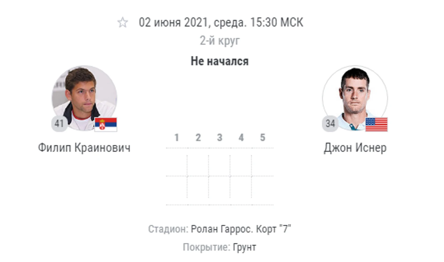 Джон в этом сезоне показывает хорошие результаты на грунте и выиграл в последних 4 из 5 матчей, травмы отступили и игра дается. В первом круге Изнер обыграл еще одного мастера подач из США Куэрри. Краиновочу даже на грунте будет сложно взять подачу Джона, можно надеяться только на ошибки американца. Ожидается матч с тай брейками, но Изнеру к ним не привыкать, поэтому поставлю на него.