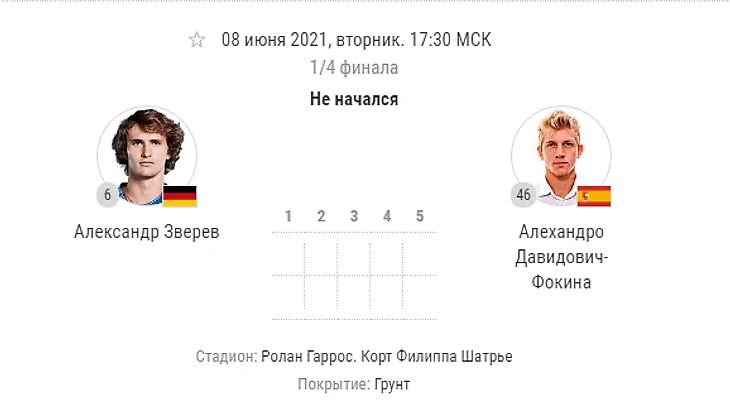 Зверев на грунте показывает хорошую игру и созрел для борьбы за титул. За счет мощной подачи он должен завладеть инициативой и сбивать испанца с ритма. Фокина проводит лучший для себя турнир, но пройти дальше ему не удастся. К матчу со Зверевым он подходит измотаным физически, бывают провалы в игре. Рискну и возьму сухую победу немца, который находится в отличной форме.