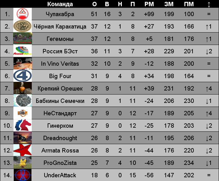 Турнирная таблица после 21-го тура