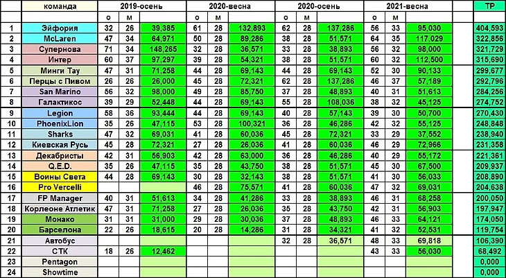 Сегодня стартует сезон на спортсе. Как и в начале прошлого сезона, начнём с попадания “Барселоны” в рубрику “дисциплинарные взыскания”. Дело в том, что неразбериха в контрактах не только у клуба, возглавляемого Рональдом Куманом, но и у клуба из 7-40. Несложную операцию с подтверждением контрактов они провалили, соответствие ников в заявке с подтверждавшими не выполнили, хотя на это мы обращали внимание. Старшая “Барселона” лишилась в итоге Месси, а наша – трёх очков на старте. Возможно, совет арбитров был бы более мягок, если б тренеры “Барсы” допустили возможной свою неправоту и не оспаривали регламент. С другой стороны, лишаться этого коллектива сразу не хотелось бы, как и “Автобуса”, не успевшего к дедлайну оформить необходимые 5 контрактов. Его мы к соревнованиям допустили, но по итогам сезона вычтем у них 9,000 рейтинга (как было в своё время с “Ривердансом”), тем более, их тренер признал свою вину. Напоминаю, что заявки на МДП должны строго соответствовать данным из контрактного поста. В противном случае на линии, где обнаружится ошибка, игрок лишится двух последних вариантов. Надеюсь, что не будет подобных вчерашнему инцидентов, да вообще никаких. Всем яркой игры!