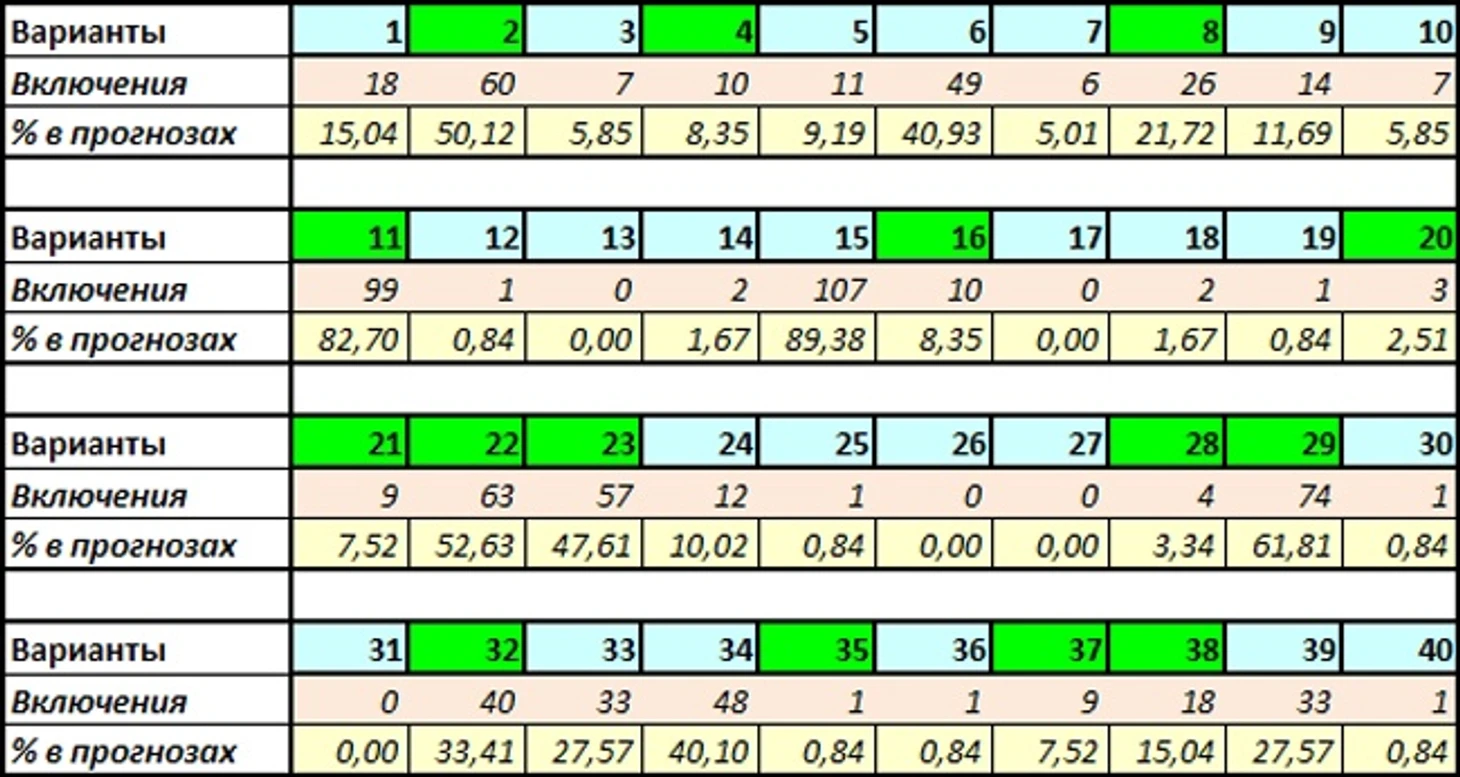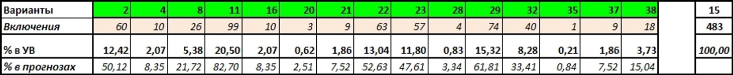 Сыграно вариантов: 15 (2-4-8-11-16-20-21-22-23-28-29-32-35-37-38)