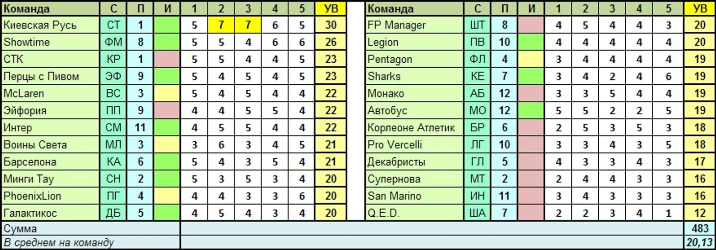 Прошу прощения за позднее превью, стал забывать, когда у нас туры. В принципе, все главные события отражены в титульном комиксе: “Киевская Русь” и СТК выдали огненный матч, первые взяли 30 УВ, вторые – 23, “Барселона” победила в матче с “Корлеоне Атлетик” благодаря в том числе варианту 20… Остальные – серость, пардон, просто шутка.