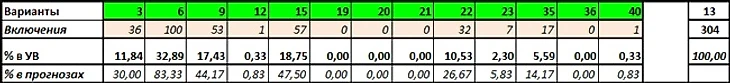 Сыграли варианты: 3-6-9-12-15-19-20-21-22-23-35-36-40