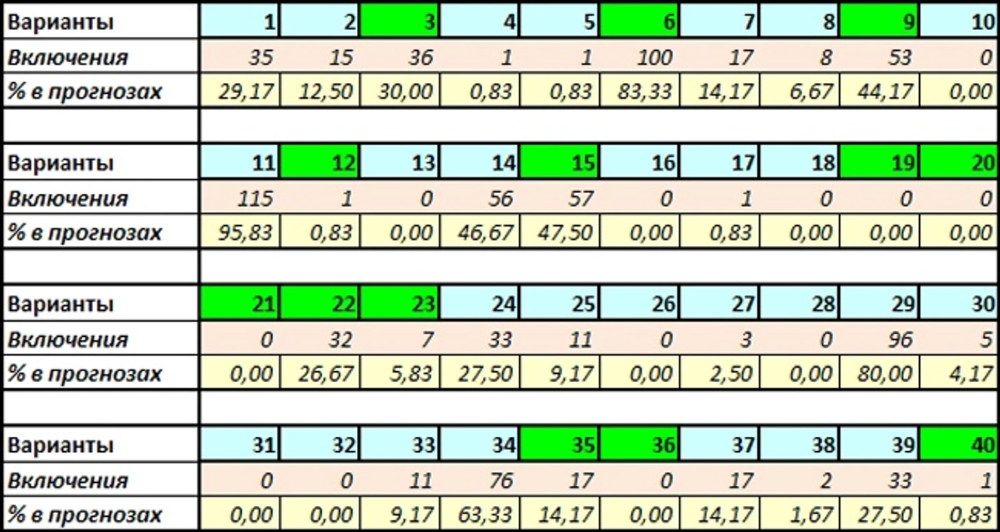 Сумма угаданных вариантов: 206 из 840 (36,19%)