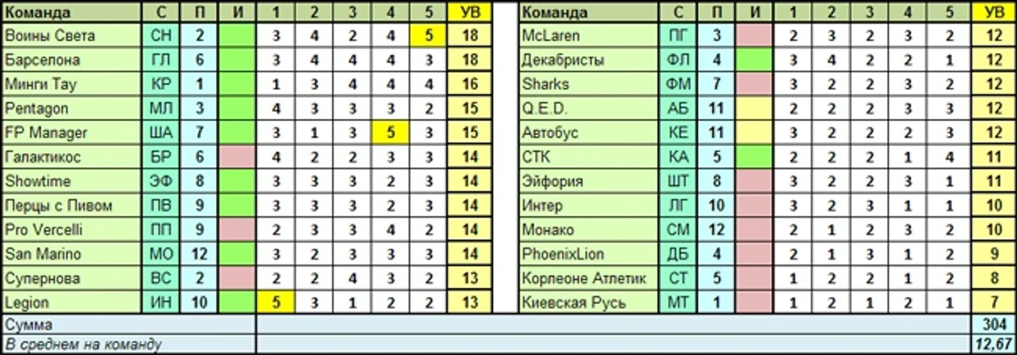 Лучший игрок тура по УВ: Евгений Пузатко (Воины Света), bankir55 (FP Manager), богдан 2005 (Legion) – 5 вариантов