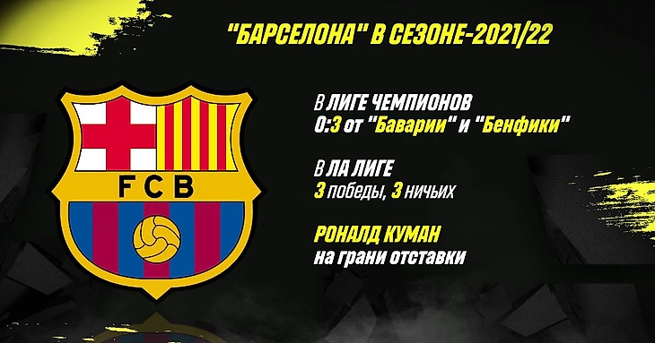 Дела "Барселоны" плохи: гостевое поражение "Бенфике" в Лиге чемпионов поставило диагноз невозможности конкурировать за еврокубковые трофеи. Теперь каталонский клуб пройдет обследование уже в рамках борьбы за титул Ла Лиги. Тут пока неясно: три победы и три ничьи в шести матчах — не лучший ход, но команда Рональда Кумана пока не знает поражений. При этом сам тренер на грани отставки: журналисты прогнозируют, что нидерландец покинет пост уже в октябре.
