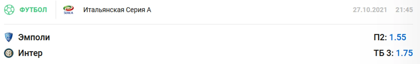 .. Интер победил только в 1 из 4 предыдущих поединков чемпионата и уже на семь очков отстает от первого места. Больше Интер не имеет права оступаться, тем более, в матчах против соперников уровня Эмполи.