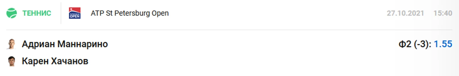 Адриан Маннарино очень неуверенно сыграл на Кубке Кремля и вряд ли добьется успеха в Санкт-Петербурге. Тогда он выиграла 2 матча со счетом 2:1, а затем проиграл Беранкису. Карен Хачанов там добрался до полуфинала, где уступил Карацеву.