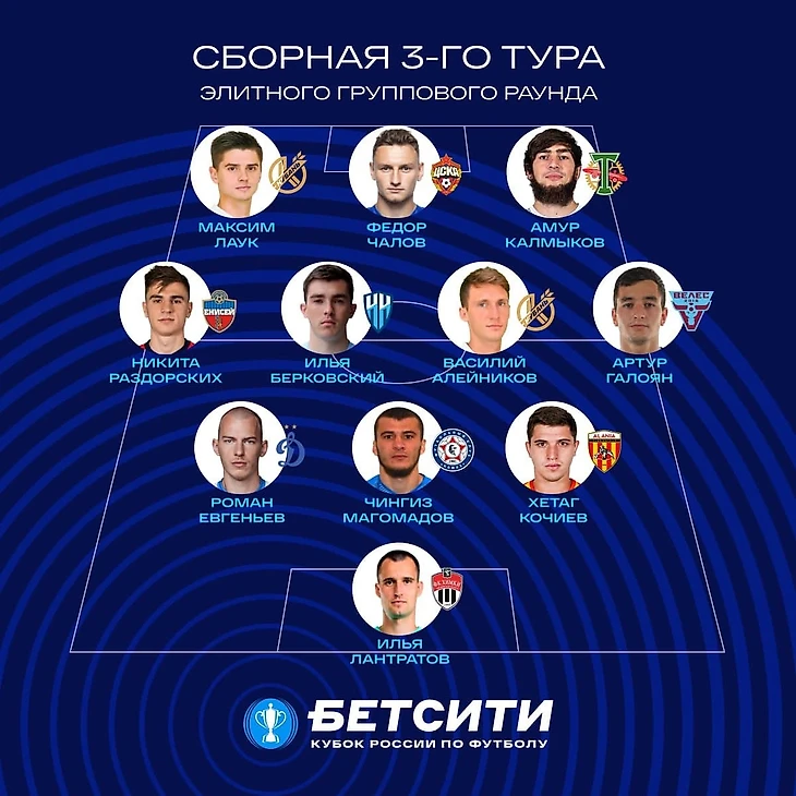 Объявлена символическая сборная 3-го тура БЕТСИТИ Кубка России