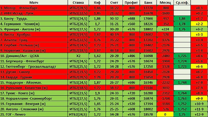 Вот и пролетела первая неделя декабря. Прошла она в топтании на месте. По итогам на 07.12 в банке 18578, именно столько и было на начало месяца. За отчетный период была сделана 21 ставка, +12 -9. (57,42%). Средний кф зашедших ставок - 1,75. Из девяти проигранных ставок в 4-х для захода не хватило всего по одному мячу. Банальное не везение - не реализованные пенальти, отличная игра голкиперов, промахи из 100-процентных моментов. Что ж бывает такое в любом виде спорта часто. В прошедших семи днях было и плохое и хорошее. Из отрицательных моментов - впервые в этом сезоне словил 4 луза подряд. Из хорошего - банк цел, удалось ликвидировать 16% просадки, на данный момент сложилась серия из пяти заходов. Остается увеличить процент захода, и немного потоптавшись на месте можно двигаться дальше.