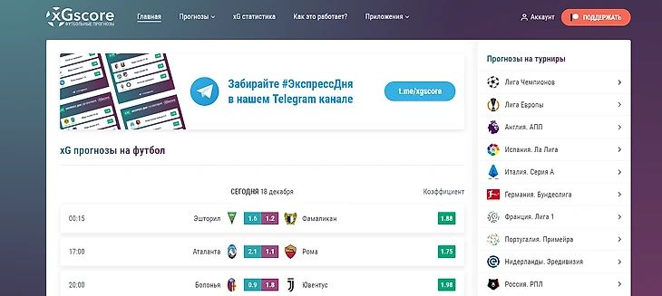 Данный сайт позволяет анализировать с помощью продвинутой статистики Xg и различных математических формул. На сайте рассчитана процентная вероятность каждого события по конкретному матчу, дает возможность оценить маржу представленных букмекерами котировок и выбрать для себя наиболее подходящее событие. Сайт также дает свои прогнозы по поводу каждого события, и все это происходит только на основании формул, без учета фундаментального анализа.