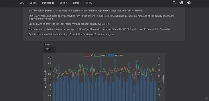 Еще один сайт, посвященный продвинутой статистике. Возможно посмотреть информацию только топ-5 лигам + РПЛ. Данный сервис позволяет понять, насколько команда эффективно играет в обороне и в атаке, какие тренды сформировались в конкретном чемпионате, есть статистика по отдельному игроку. Подобная информация дает шанс оценить игрокам ставку "обе забьют", "тотал больше или меньше".